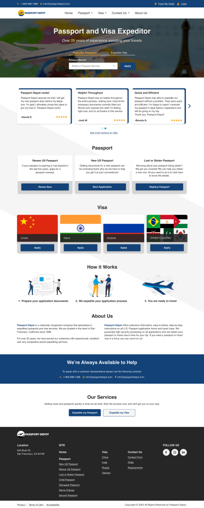 Passport Depot is a passport and website agency that has been around since 1998. The clients wanted to modernize their website to keep up with the competitors and improve the website’s overall user-experience. As a UI/UX designer, I was tasked to do the redesign of the website.