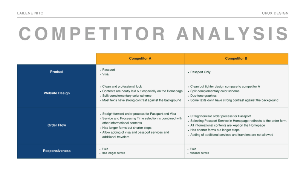 The competitor analysis above is not only for benchmarking but also for Passport Depot to address the gaps the competitors missed.